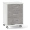 Struttura sp. 18mm e cassetti sp. 16mm. Guide cassetto a rullo. Ruote piroettanti con fermo. 1 cassetto con serratura. Maniglie verniciate cromo satinato. Mobile montato.