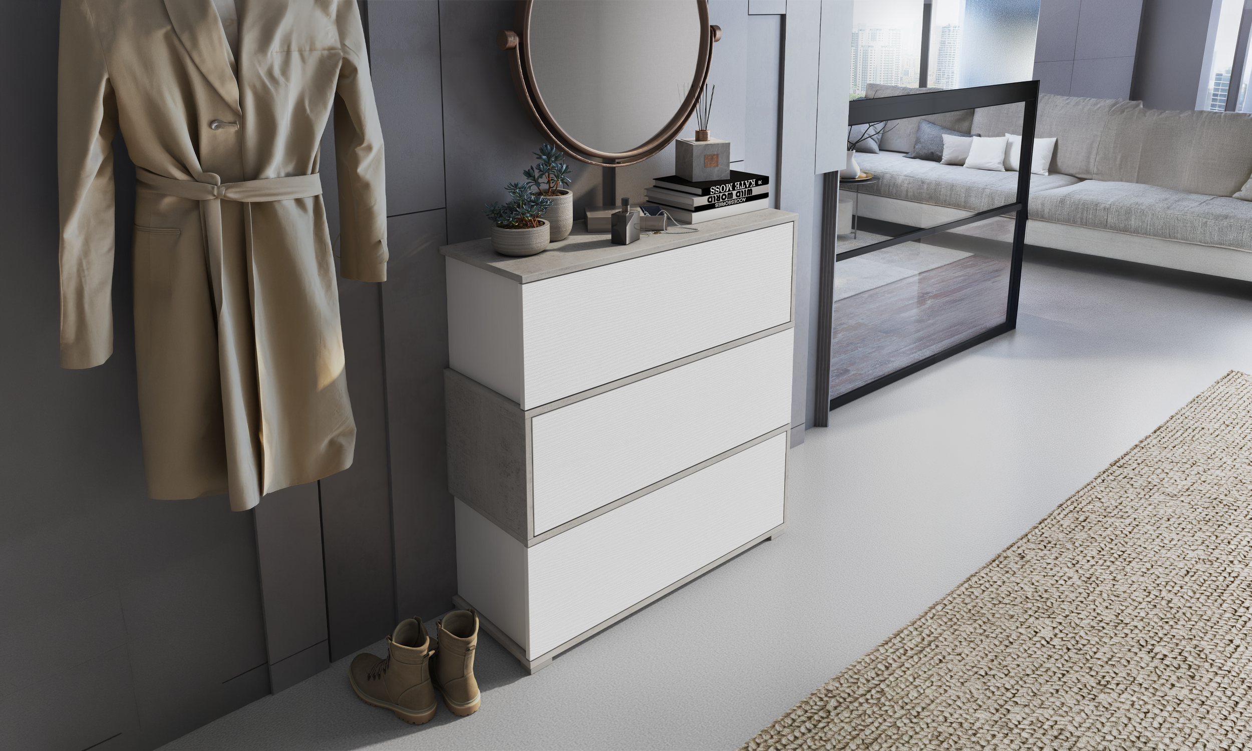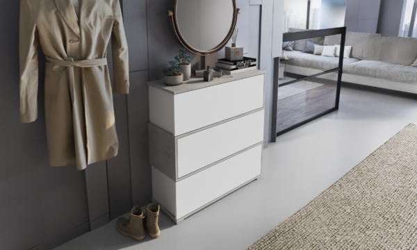 Scarpiera Orizon 3 cassetti bianco/cemento
