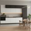 La cucina MIRAL,disponibile sia in composizione a destra che a sinistra, incarna l’equilibrio perfetto tra estetica essenziale e massima funzionalità. Caratterizzata da un design pulito e luminoso, questa composizione si distingue per i frontali nella delicata finitura Bianco Rain che dona calore e modernità all’ambiente. La linearità del design è sottolineata dalle maniglie a tubetto in finitura inox, che garantiscono un’impugnatura ergonomica e un tocco di eleganza contemporanea. Con una lunghezza totale di 255 cm, la cucina MIRAL è progettata per ottimizzare ogni centimetro, offrendo una soluzione completa anche per spazi contenuti grazie alla sua struttura compatta ma estremamente capiente.