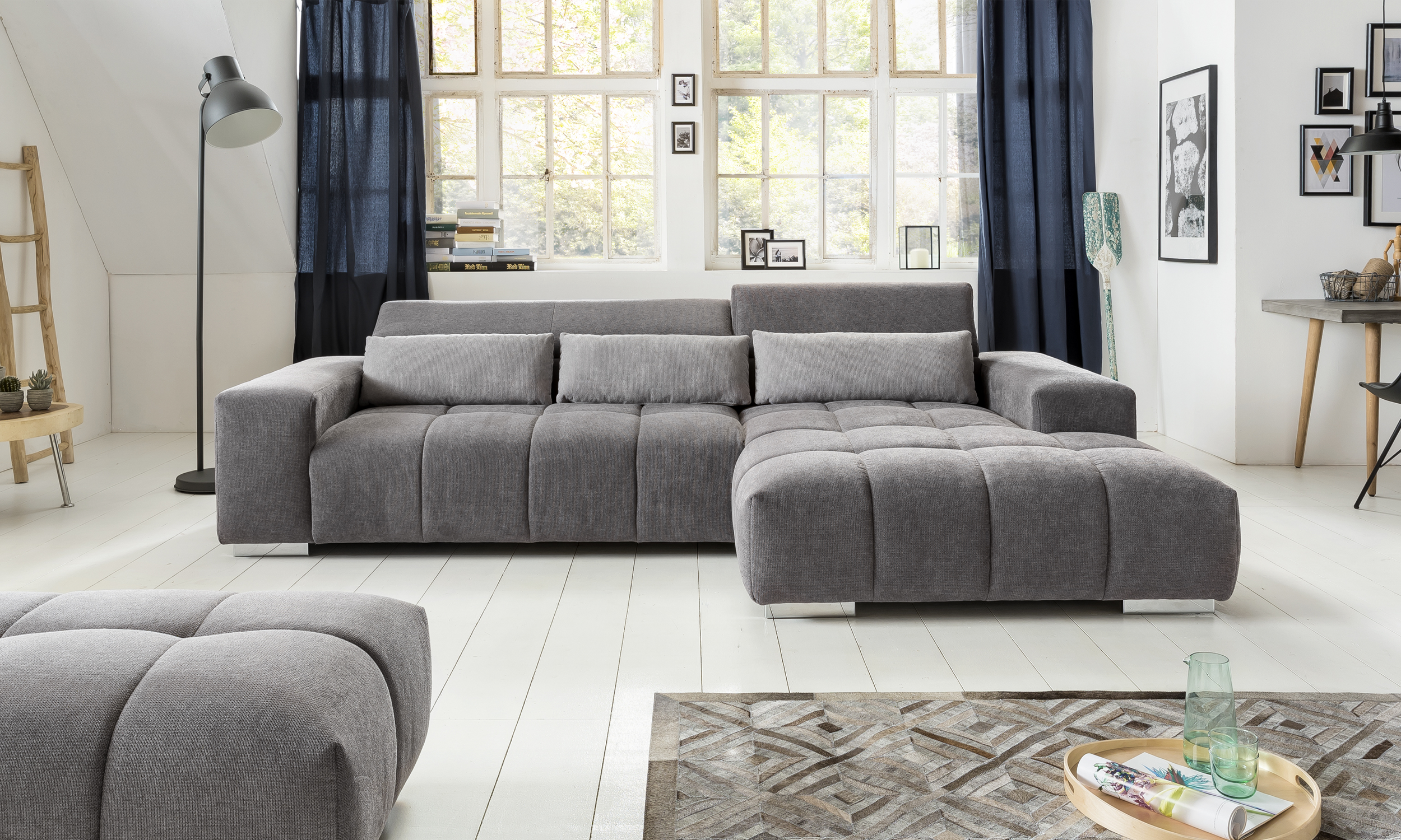 Il divano con penisola ORI, dalle dimensioni generose, offre il massimo del comfort grazie al meccanismo relax integrato e ai poggiatesta reclinabili. Elegante e accogliente, è disponibile in versione destra o sinistra per adattarsi perfettamente al tuo spazio.