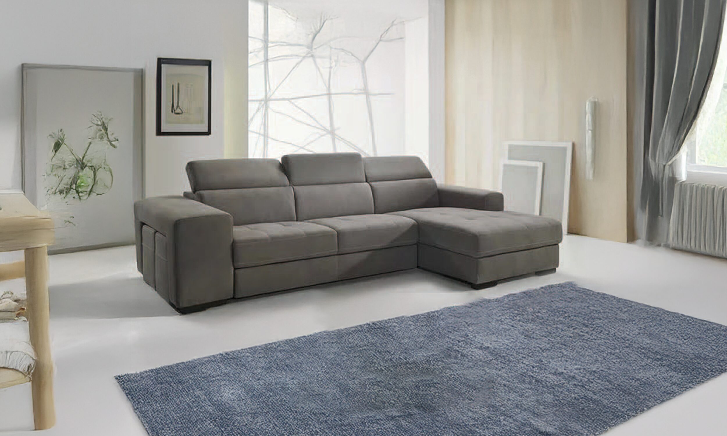 Il Divano 2 posti con penisola reversibile VENTOTENE è la soluzione perfetta per chi desidera massima versatilità e comfort senza rinunciare allo stile. Grazie alla sua penisola reversibile, puoi adattarlo facilmente alla disposizione del tuo spazio, rendendolo perfetto per ogni ambiente. Dotato di letto estraibile, si trasforma in pochi istanti in un comodo letto per ospiti, mentre i 2 pouff integrati nel bracciolo aggiungono un tocco di praticità in più, sempre a portata di mano per qualsiasi occasione.