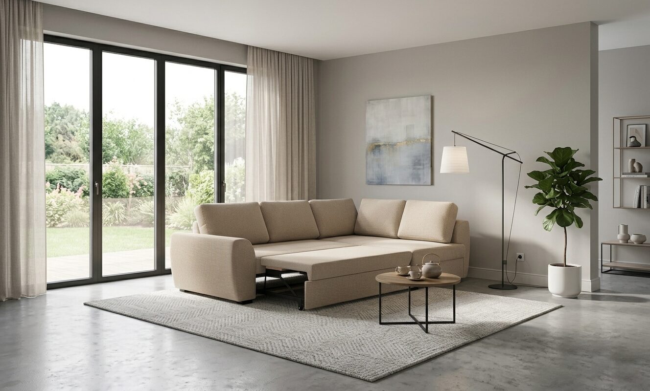 Trasforma il tuo living in un’oasi di relax con il divano angolare Drenna. La sua linea moderna e accogliente nasconde un’anima incredibilmente versatile: grazie alla struttura reversibile, puoi adattare l’angolo ai tuoi spazi con un semplice gesto. Disponibile nelle eleganti tonalità beige, per un tocco di luce naturale, o antracite, per un carattere più deciso e contemporaneo.Non solo stile, ma massima funzionalità: con il pratico meccanismo a carrello, il divano si trasforma in pochi istanti in un comodo letto, pronto a regalare sogni sereni ai tuoi ospiti. Che sia per una serata cinema o un riposo rigenerante, Drenna è la soluzione perfetta firmata Mobilandia per chi non vuole scendere a compromessi tra estetica e praticità.