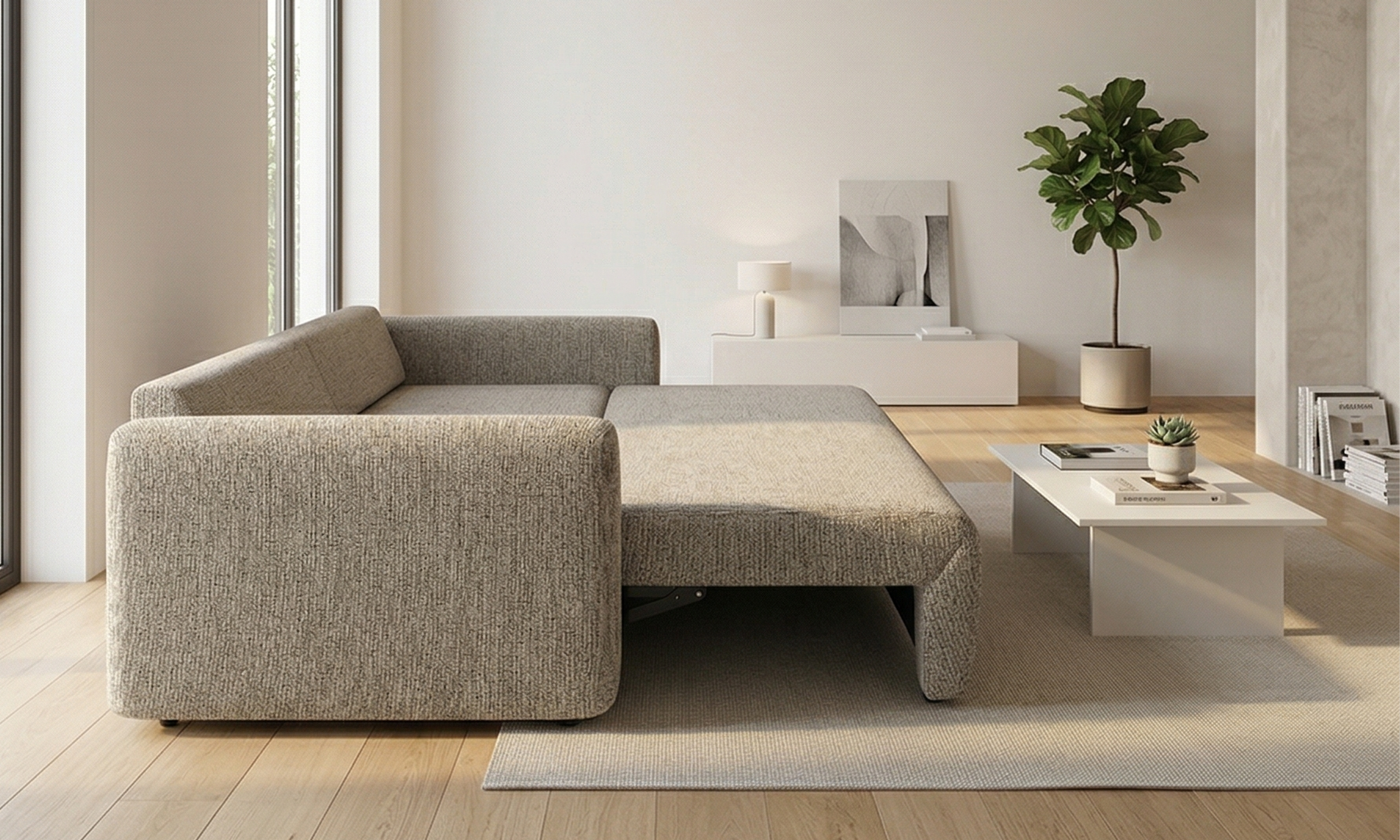 Il divano FLAVIA è la sintesi perfetta tra design contemporaneo e massima funzionalità, ideale per chi cerca uno stile accogliente senza rinunciare alla praticità. Caratterizzato da una struttura megasofà dalle linee morbide, è rivestito in una morbida e pregiata ciniglia, che dona una sensazione tattile piacevole e un aspetto ricercato. Disponibile in due varianti cromatiche versatili, beige e grigio cenere, si integra armoniosamente in ogni tipo di arredamento. La sua caratteristica distintiva è il letto estraibile, che permette di trasformare il salotto in una confortevole zona notte in pochi istanti. FLAVIA è la soluzione ideale per chi desidera unire l’eleganza del tessuto in ciniglia alla comodità di un ampio divano trasformabile.