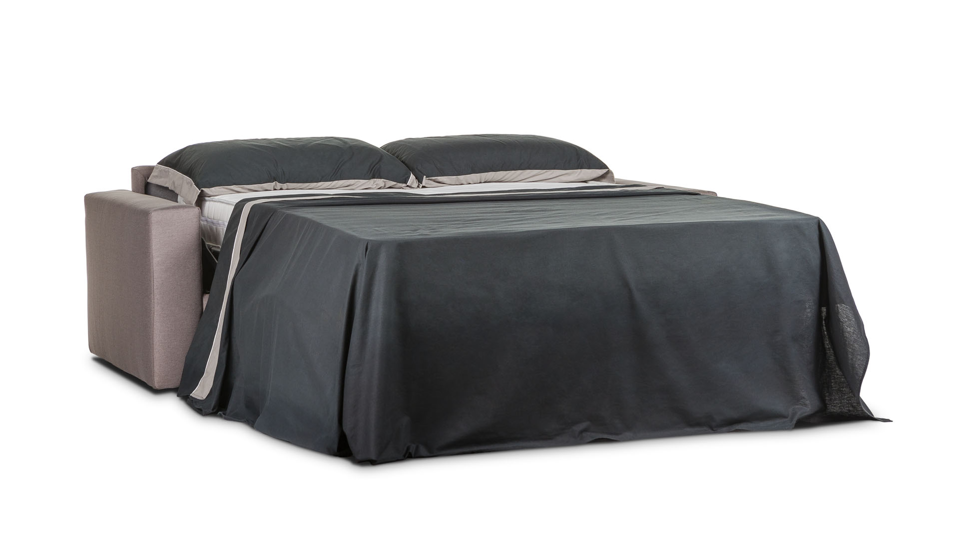 Divano letto con rete a ribalta e materasso da 17cm, completamente sfoderabile.