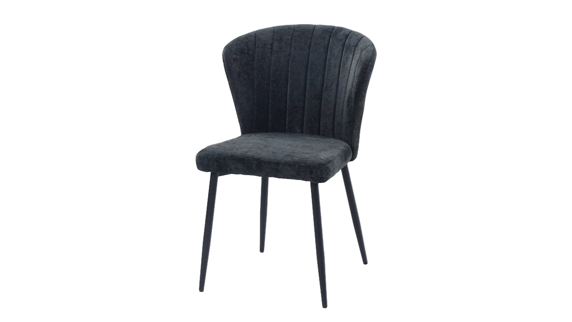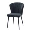 Sedia rivestita in velluto con cuciture a vista sullo schienale e struttura in metallo verniciato nero