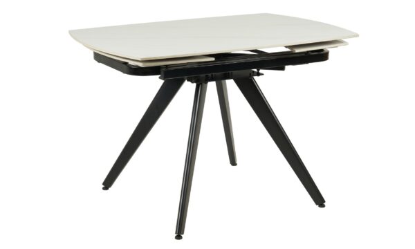 Il tavolo Billy è la perfetta combinazione tra estetica moderna e praticità quotidiana. Il suo sistema di apertura rotante permette di estendere il piano con un gesto fluido e intuitivo, grazie alle due allunghe integrate da 30 cm, ideali per ampliare lo spazio in pochi secondi. Il design centrale con gambe oblique in ferro verniciato satinato nero dona solidità e un carattere deciso, mantenendo una linea elegante e leggera. Il piano in pietra sinterizzata effetto marmo grigio o bianco esprime tutta la raffinatezza dei materiali contemporanei, unendo resistenza, facilità di pulizia e un look sofisticato.