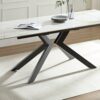 Tavolo Favignana, elegante e versatile, con piano in nobilitato rovere gessato e due allunghe in tinta da 45 cm per una lunghezza massima di 250 cm. La struttura in ferro verniciato nero dona solidità e un tocco di stile moderno, perfetto per ambienti contemporanei e accoglienti.