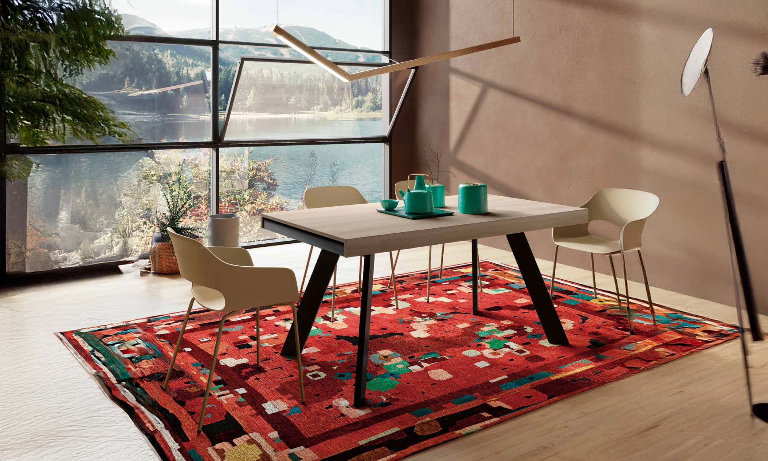 Tavolo allungabile con piano in nobilato colore rovere gessato.