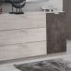 Comodino moderno in essenza legno con scocca e cassetti e particolari in ossido.