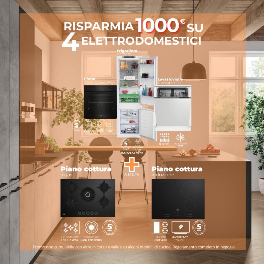 Con Mobilandia rinnovare la tua cucina oggi è ancora più conveniente. Scegliendo una soluzione da una selezione dedicata, puoi ottenere uno sconto di 1000€ su un set di 4 elettrodomestici. Un’opportunità pensata per chi cerca affidabilità, funzionalità e design contemporaneo, unendo qualità e convenienza in un’unica proposta.
